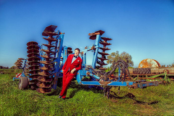 Die Kampagne „Kleider machen Leute“ würdigt seit über zehn Jahren Menschen, die durch ihre besonderen Berufe das Fundament unserer Gesellschaft bilden. Für dieses Projekt schlüpfte Stiller aus seiner vertrauten Arbeitskleidung in einen maßgeschneiderten weinroten Cordanzug mit weißem Hemd und blauer Samtfliege, entworfen von Maßschneider Stephan Görner. Fotograf Edward Park setzte den Landwirt dabei zunächst authentisch in Arbeitskleidung, dann eindrucksvoll in Szene – zwischen Ernsthaftigkeit, Charisma und einer unerwarteten Portion Glamour auf dem Acker mit einer Scheibenegge, die sonst für das Umgraben des Feldes eingesetzt wird.
