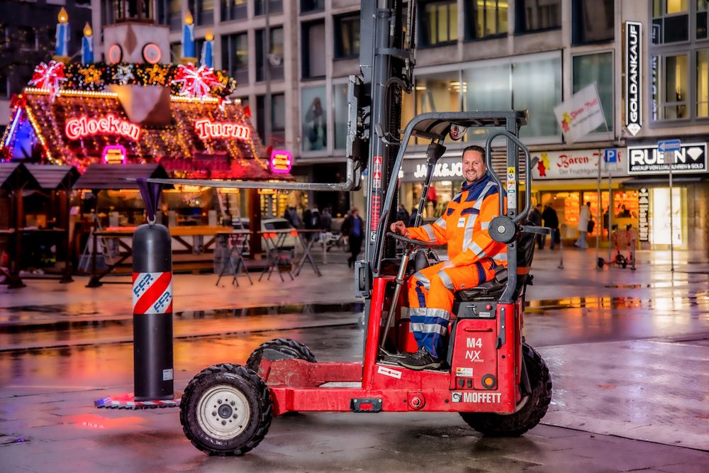 Auch beim diesjährigen Frankfurter Weihnachtsmarkt übernahm er die Einsatzleitung. An sechs Arbeitstagen wurden über 300 temporäre Zufahrtssperren aufgebaut – vom Römerberg über das Mainufer bis hin zum Rossmarkt und zur Hauptwache. Die Systeme dienen dazu, unbefugten Fahrzeugverkehr fernzuhalten und Besucherinnen und Besucher zu schützen. „Wir sind bei allen Großevents im Einsatz – beim IRONMAN, der Fassenacht oder wenn die Eintracht wieder einen Titel feiert. Unser Ziel ist die Sicherheit der Menschen, in Frankfurt und deutschlandweit“, sagt Macri. Seit 2021 gehört der gelernte Verkäufer zum Team der FFR, dem Vorreiter für mobilen Zufahrtsschutz.