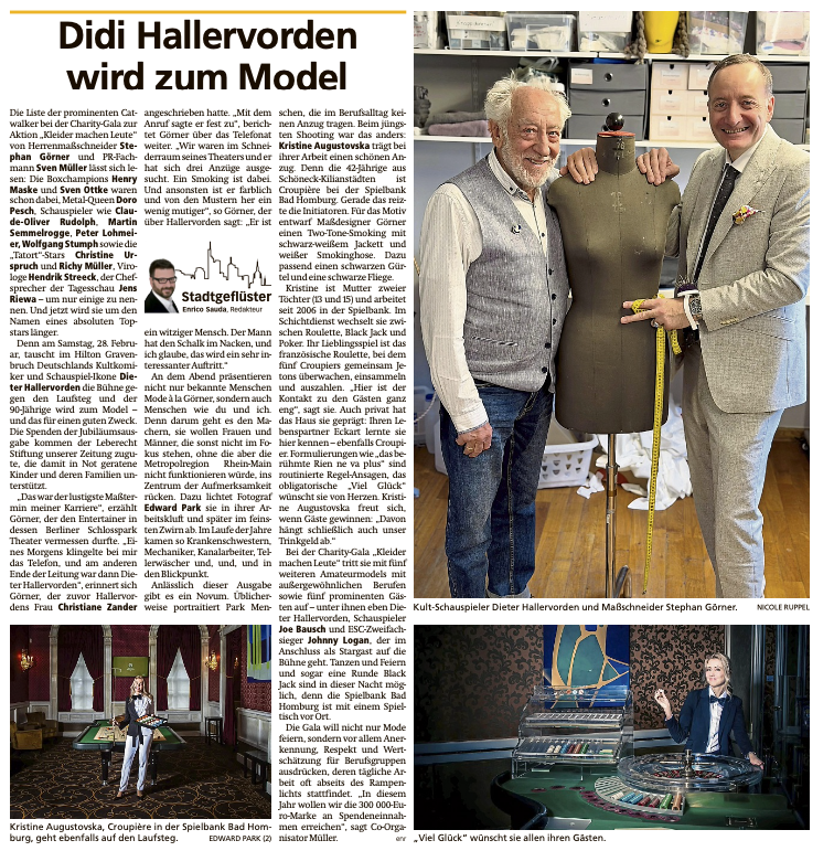 Die Gala beginnt am 28. Februar 2026, um 18.30 Uhr, im Hilton Hotel Gravenbruch. Hotelzimmer können bis 6. Februar 2025 unter dem Stichwort "Kleider machen Leute" bestellt werden.
