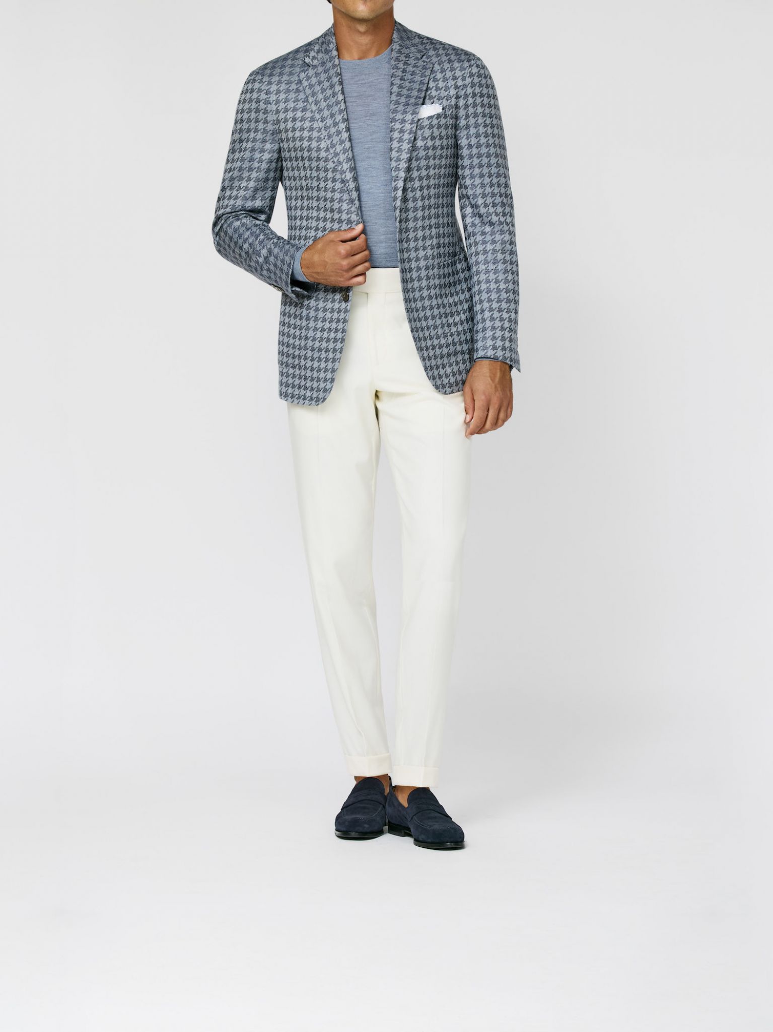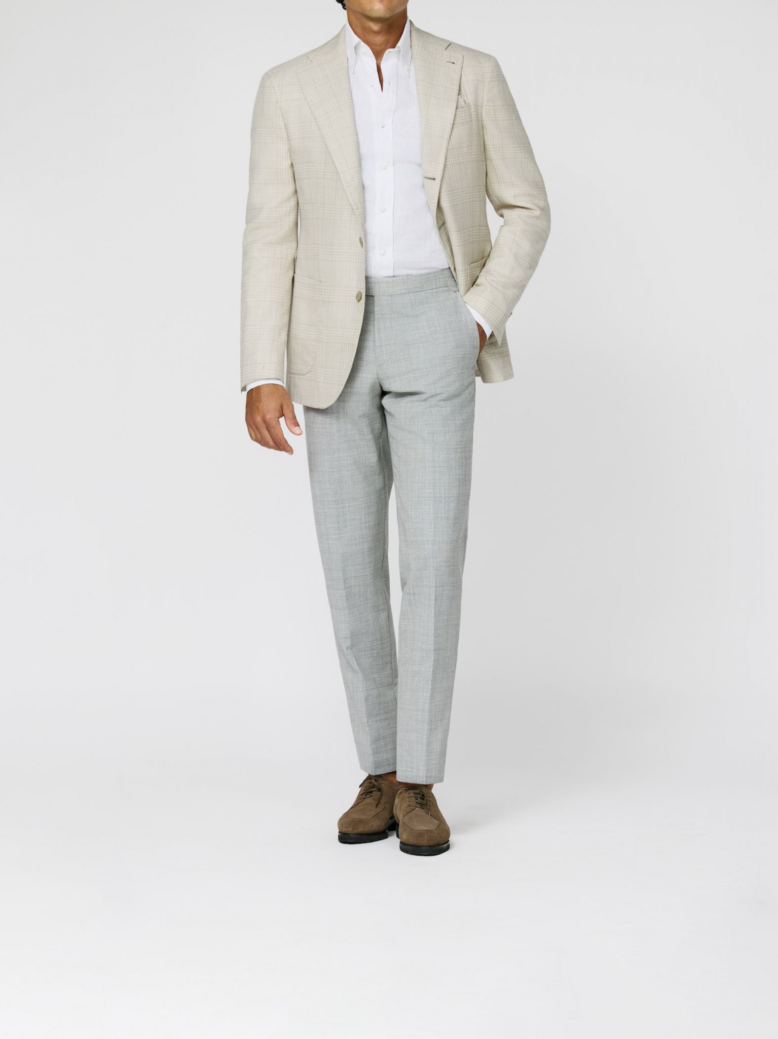 Unsere aktuellen Kollektionen für Maßanzüge sowie Jacketts auf Maß in Kombination mit Hosen und Jeans sowie unsere Casual Tailoring Looks für den Frühling/Sommer 2026.