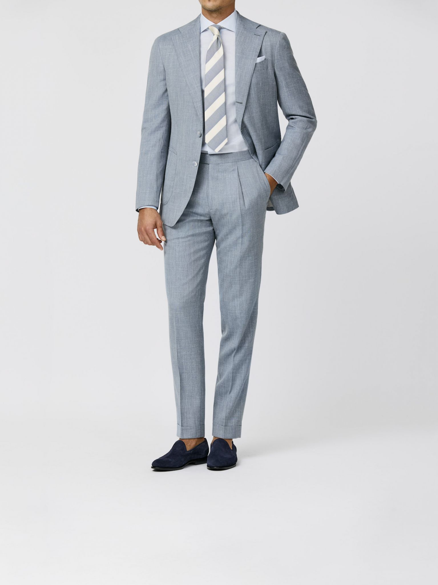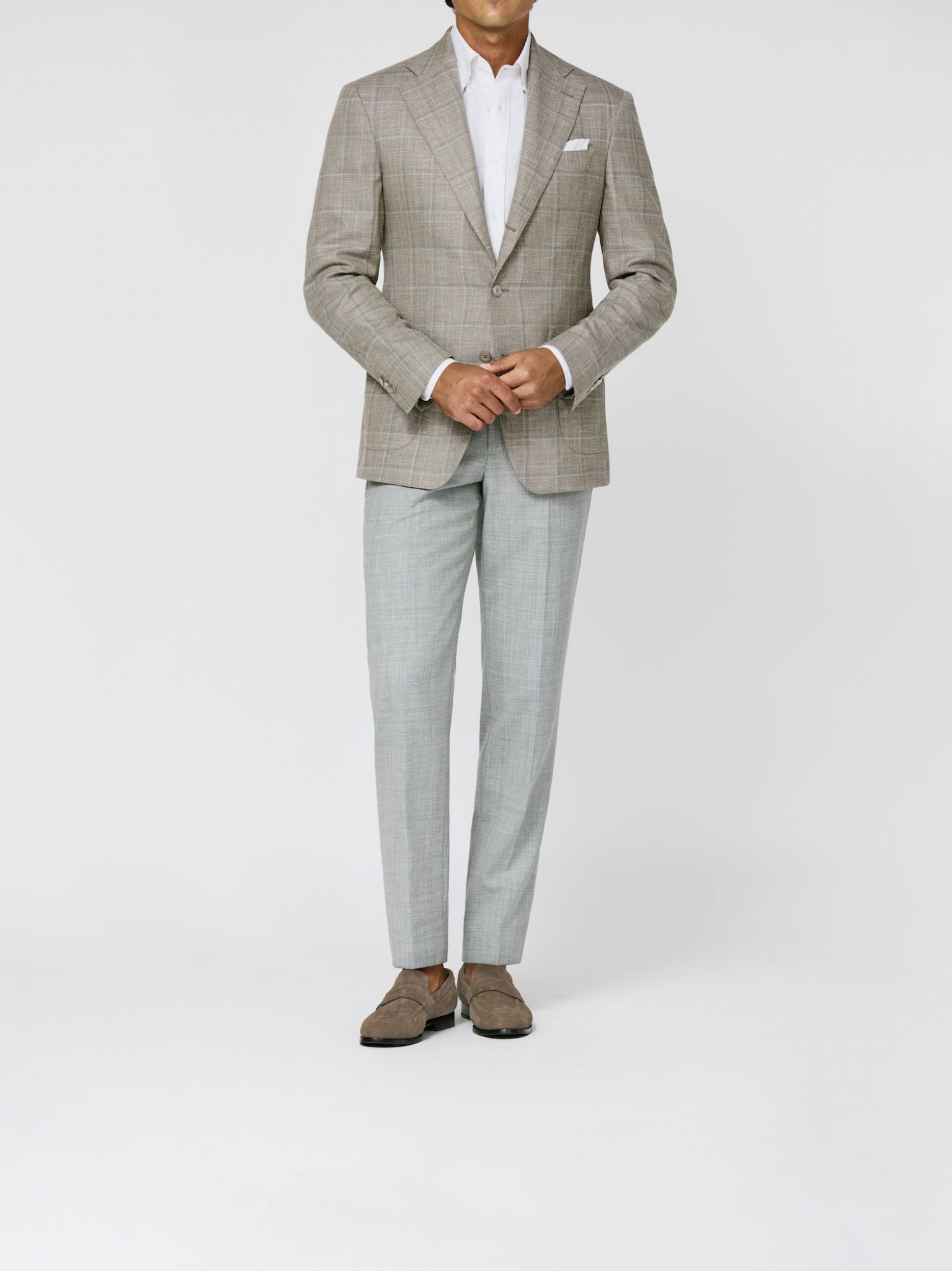 Unsere aktuellen Kollektionen für Maßanzüge sowie Jacketts auf Maß in Kombination mit Hosen und Jeans sowie unsere Casual Tailoring Looks für den Frühling/Sommer 2026.